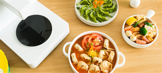 智能烹飪設備,與健康預制飯菜配合使用。當智能烹飪設備對預制菜進行識別后,便會自動開始烹飪。只需3-5分鐘,便可以享受到一道現做美味。