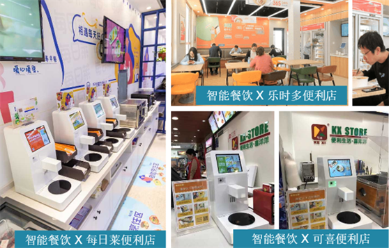 便利店+餐飲早已是時代所需,對于消費者而言工作生活節奏快,便捷健康的食品是消費者的首選,不用排隊等餐,不用浪費自己工作休憩時間就可吃到美味食物是他們迫切需求的。而對便利店經營者來說,不用增設任何人工場地等成本就可提供海量餐食,既增加了店鋪營收項目,又引來了大批客流,帶動二次消費,對此很多便利店經營者對待美鄰小廚智能烹飪機都有種相見恨晚的感覺。