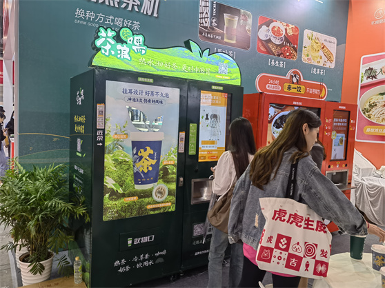另外,我們的智能茶飲機(jī)、智能餃子館等產(chǎn)品,為許多參展人提供了智能餐飲新思路。視野開闊、產(chǎn)品豐富的現(xiàn)場(chǎng)展示,在展會(huì)第一天就吸引了各行業(yè)有需求客戶的參觀與問詢,紛紛上前體驗(yàn)我們?cè)O(shè)備的智能和食品的美味。