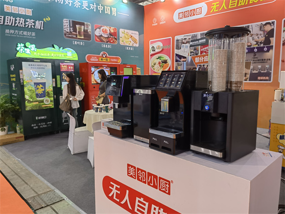 在此次展會(huì)上,美鄰小廚攜智能餐吧、智能茶飲吧、智能餃子館以及智能冷凍售賣柜等餐飲項(xiàng)目,匯集非餐飲場(chǎng)所下的智能餐飲解決方案,為行業(yè)注入新動(dòng)力。