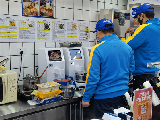 美鄰小廚智能烹飪設備,不需要人工,顧客自助掃碼,智能做飯機器人一鍵烹飪,3-5分鐘即可出餐,用戶的就餐效率更快,經營利潤也帶來了指數版增長。