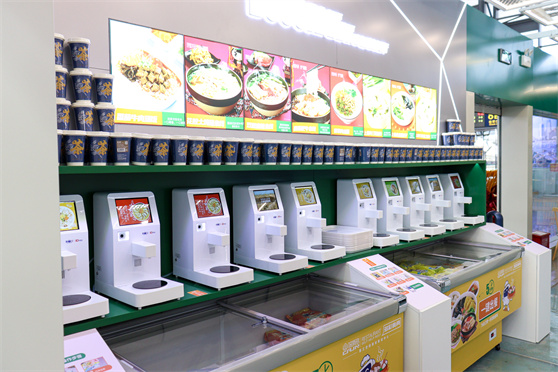 美鄰小廚智慧餐飲項目,通過結合了先進物聯網技術的智能烹飪設備,搭配與設備配套的高品質、標準化預制菜品,顧客只需挑選產品,智能設備對美食產品進行識別后,便會自動開始烹飪。只需3-5分鐘,便可以享受到一頓現煮現烹的美味。