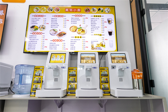 美鄰小廚順應智慧餐廳致力于為客戶提供集科技和便利于一體的非餐飲場景下智慧餐飲解決方案,結合智能烹飪技術很大程度上減少人工成本,從根本上解決“懶人”需求。在寫字樓、加油站、景區、酒店等各任何有就餐需求的場所均可投放。
